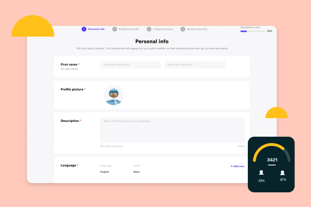 Quick sign-up to start your freelance journey.
